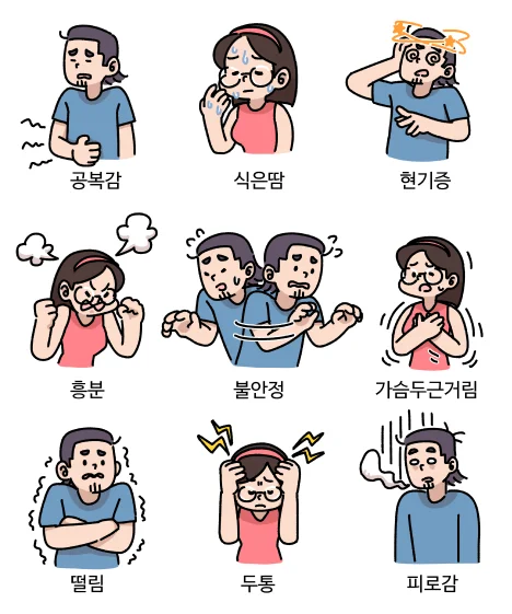 사람마다 저혈당의 기준은 다르지만, 전형적인 저혈당의 증상으로는 손 떨림, 식은땀, 두근거림과 같은 증상이 있습니다.