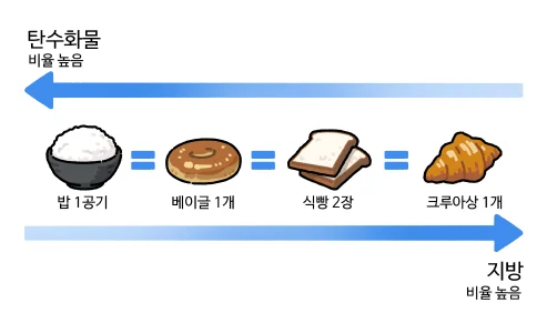 밥 1공기 = 플레인 베이글 1개 = 식빵 2장 = 크루아상 1개